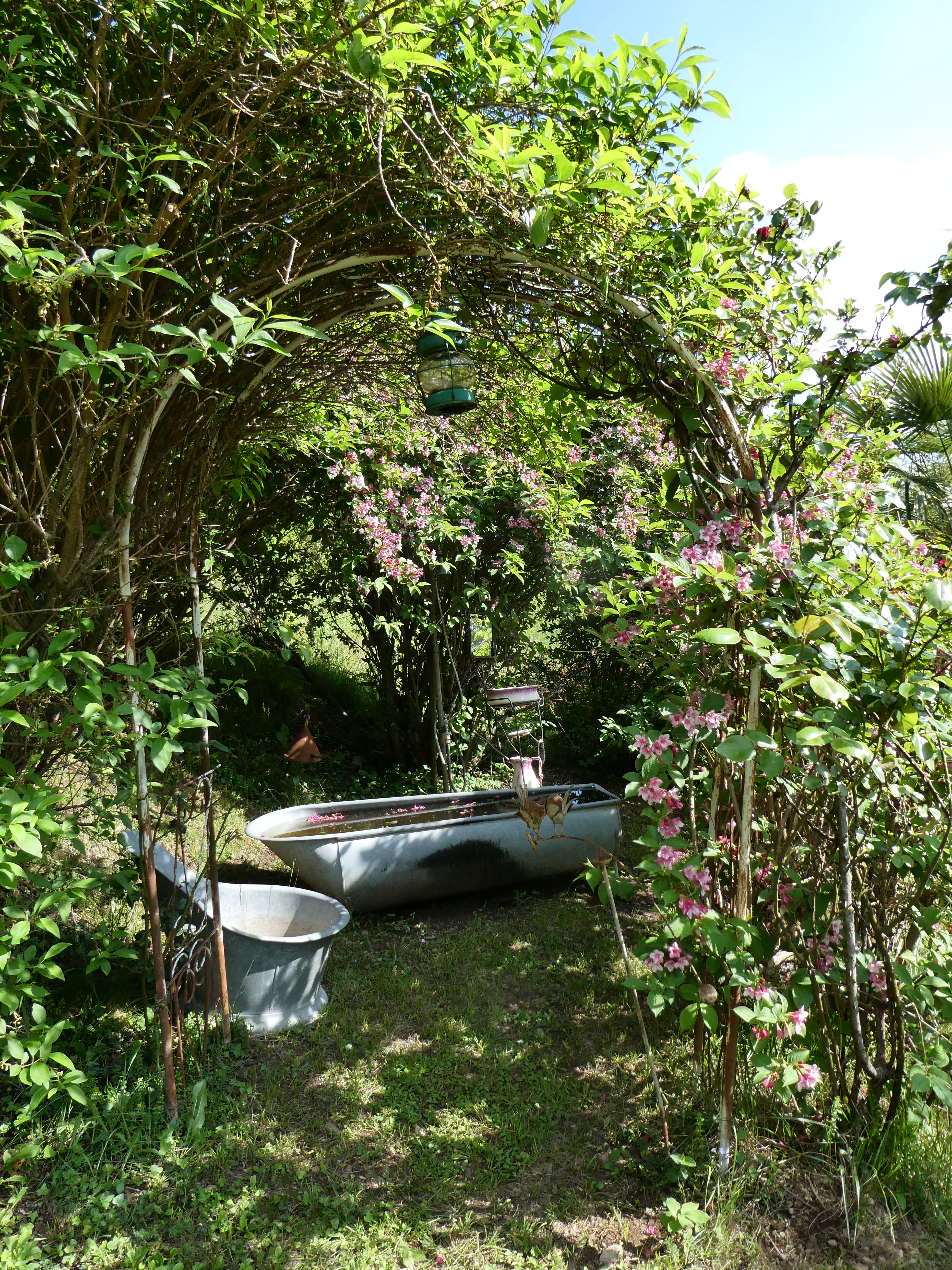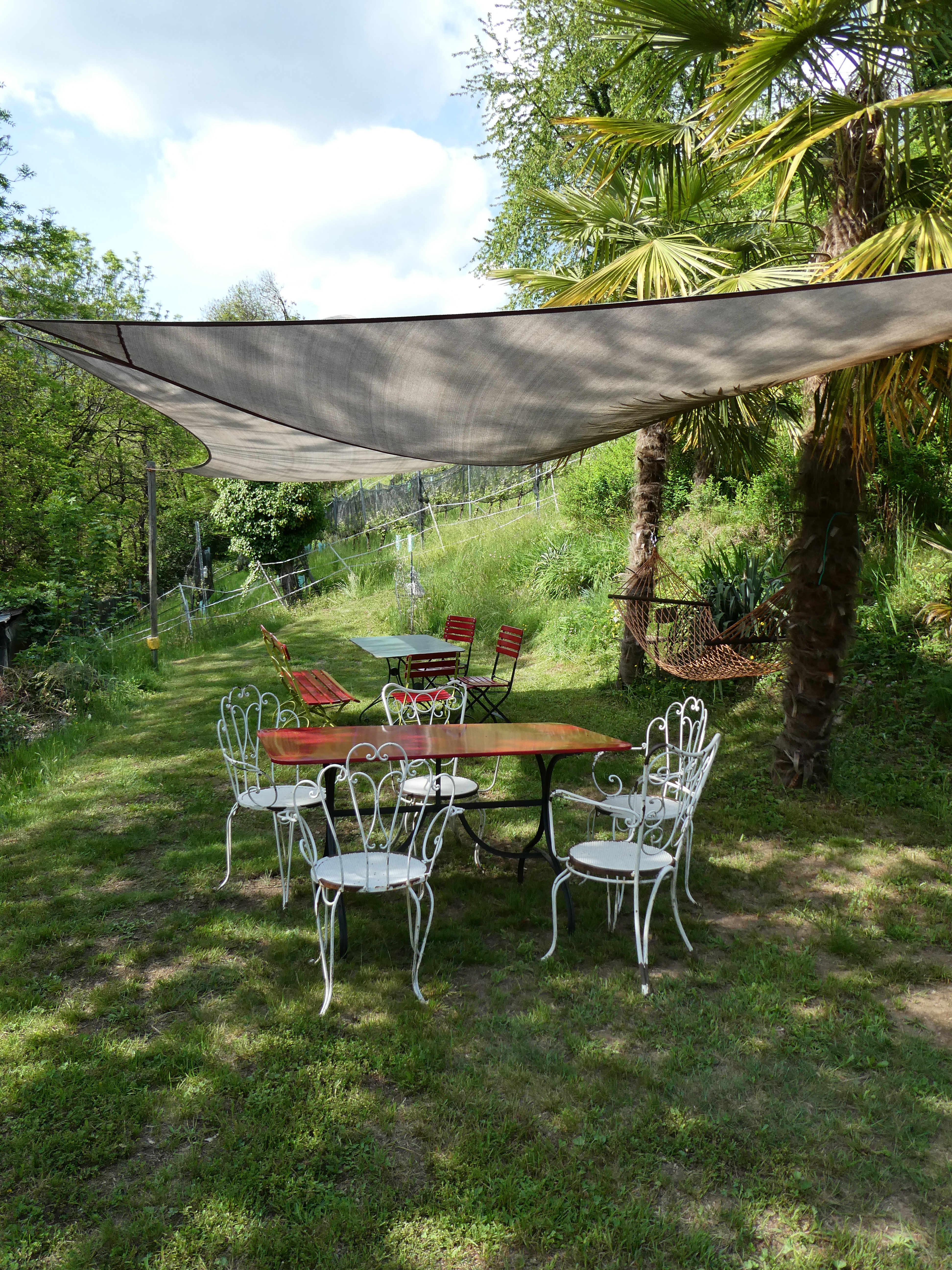 Unser gemeinsam genutzter Garten ausserhalb des Dorfes (10 min zu Fuss) ist eine besondere Oase und bietet verschiedene Möglichkeiten: sonnbaden, grillieren oder kochen in der Kioskküche, Rückzug in die Baumhütte, spielen im Wald, Plausch in der Badewanne ( kalt oder mit etwas Geschick vom Feuer erwärmt). Je nach Saison besteht die Möglichkeit Gemüse vom Garten zu kaufen.